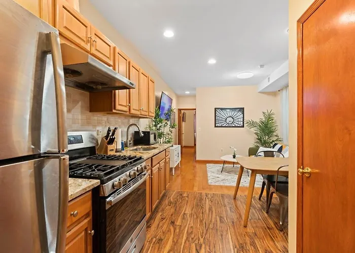 The 1-room 2 Bedroom Gems Near Center City lies at a distance of 3 km from the massive Adventure Aquarium and about 300 metres from Spring Garden tube station. The apartment offers modern facilities, such as Wi-Fi and essentials like parking for car travellers.